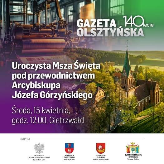 Zapraszamy na Uroczystą Mszę Świętą pod przewodnictwem Arcybiskupa Józefa Górzyńskiego. Środa 15.04.2026 o godzinie 12:00 Gietrzwałd