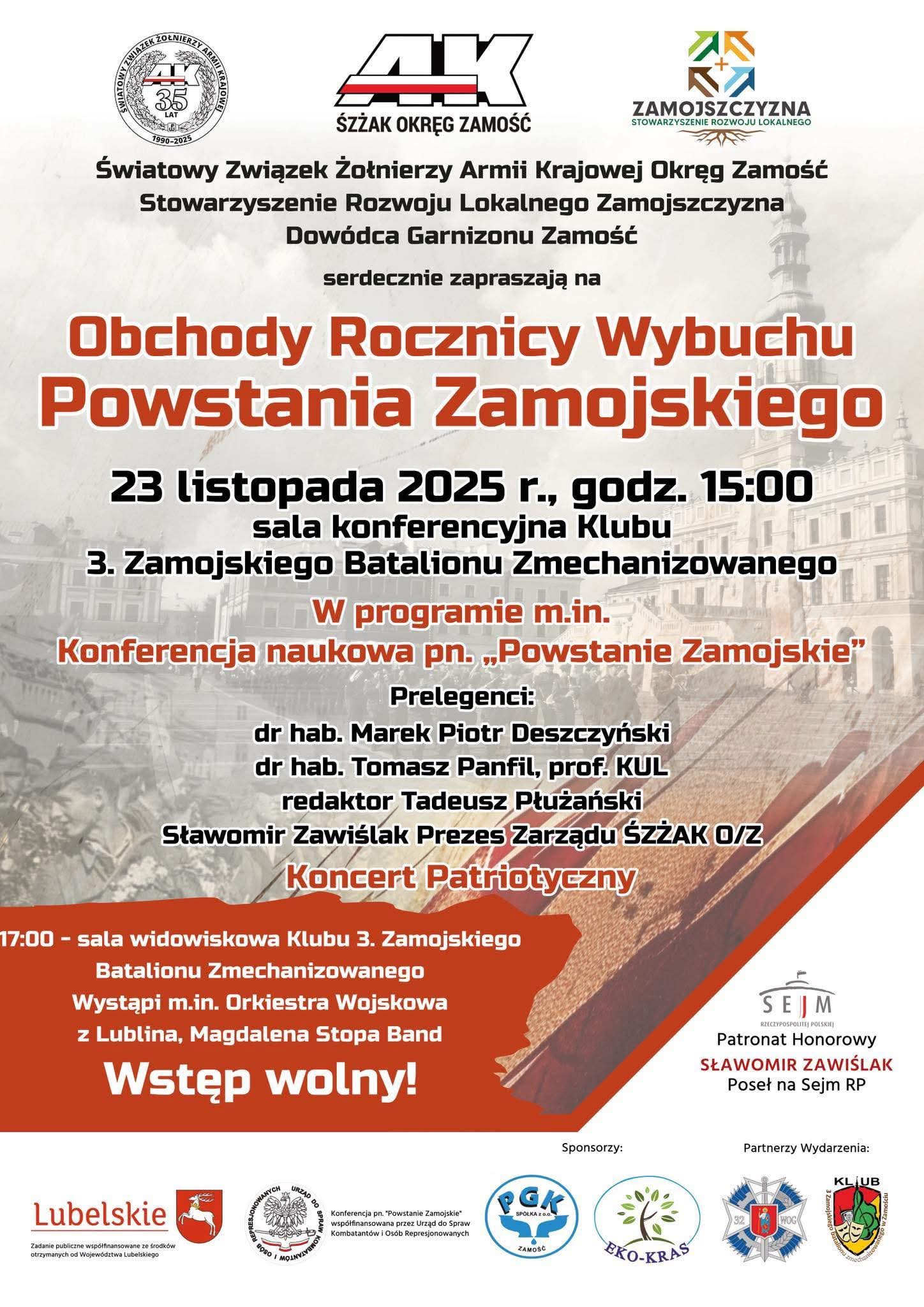 „Zjednoczeni dla wolności – w hołdzie Bohaterom Powstania Zamojskiego” 🇵🇱 👉 Z poczuciem odpowiedzialności za pamięć o Bohaterach Powstania Zamojskiego serdecznie zapraszam Państwa na wyjątkową konferencję historyczną oraz uroczysty koncert poświęcony temu – wciąż zbyt mało znanemu – a przecież zwycięskiemu zrywowi narodu polskiego. ‼️ W końcu 1942 roku, gdy Hitler i niemiecki okupant byli u szczytu swojej potęgi, nasi […]
