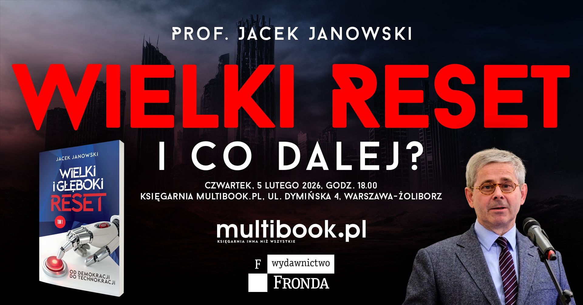 Zaproszenie na spotkanie autorskie z prof. Jackiem Janowskim, autorem "Wielki i Głęboki Reset".