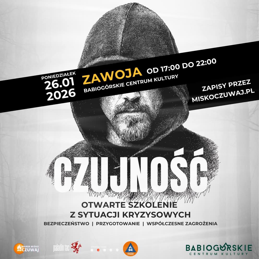 Babiogórskie Centrum Kultury Zawoja 2000A, Zawoja, PolandCześć Zawojo i najbliższa okolico! Szkolenie z bezpieczeństwa i sytuacji kryzysowych odbędzie się w Waszym mieście w poniedziałek 26 stycznia! Zaczynamy o 17:00 i szkolimy się do 22:00! Przybywajcie zapisując się poprzez formularz na stronie: https://miskoczuwaj.pl/szkolenia-spoleczne/?fbclid=IwdGRjcAPUQv9jbGNrA9RC9GV4dG4DYWVtAjExAHNydGMGYXBwX2lkDDM1MDY4NTUzMTcyOAABHpGBrhGd-a1B6YofFUs_I259Se9CNg38MmPCe_z1_ZGpFuu6utym4O6PBY_Q_aem_MYFB-xvzYYp32txuglKDow